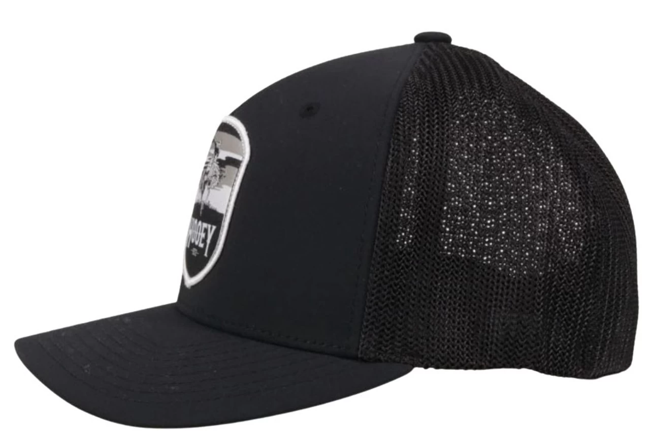 Hooey Caps are for anyone who lives the true western life. This Cheyenne baseball cap has a Black 6-Panel style with a white embroidered Hooey Rider logo patch. The comfortable fit of this trucker cap includes a flexfit mesh back. The hybrid bill of the ball cap stays flat or bends to your preferred shape. One Size Fits Most Black with White rider Hooey patch Polyester / Cotton / Spandex Breathable Mesh Back Flexfit Snapback Band Youth size Hybrid Bill Imported
