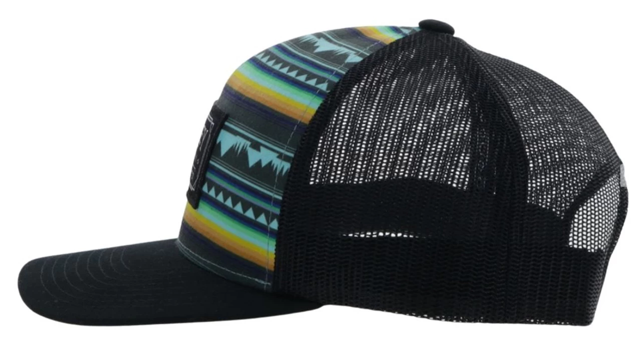 Hooey Caps are for anyone who lives the true western life. This Youth Doc trucker cap has a Turquoise and Black 5-Panel style with a Black and White Hooey rectangle logo patch. The comfortable fit of this trucker cap includes an adjustable mesh back. The hybrid bill of the ball cap stays flat or bends to your preferred shape. Turquoise and Black Aztec print with a black and white Hooey Patch Polyester / Cotton / Spandex Breathable Mesh Back Adjustable Snapback Band Youth size Hybrid Bill Imported