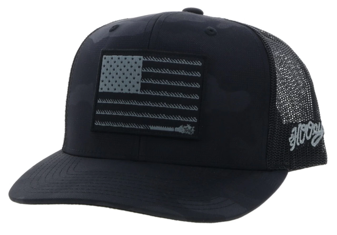 “Liberty Roper” Hooey Black 6-Panel Trucker with Black / Grey Flag Patch – OSFA