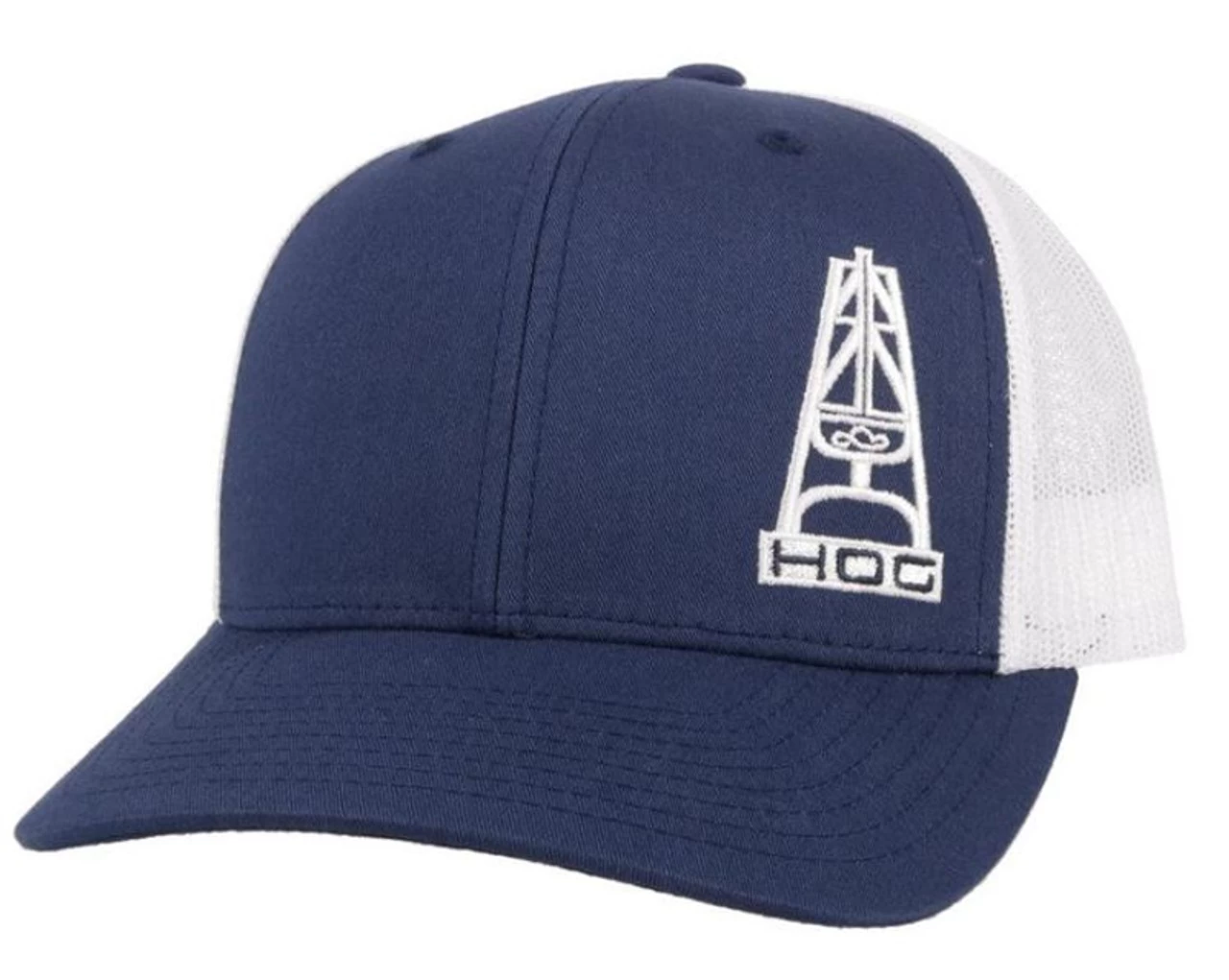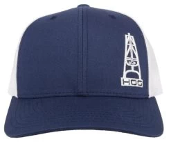 Hooey Men’s “Hog” Navy/White 6 Panel Cap Navy Blue with White Mesh White Embroidered Logo 6-Panel OSFA, Snapback Mid-Profile Curved Bill Trucker