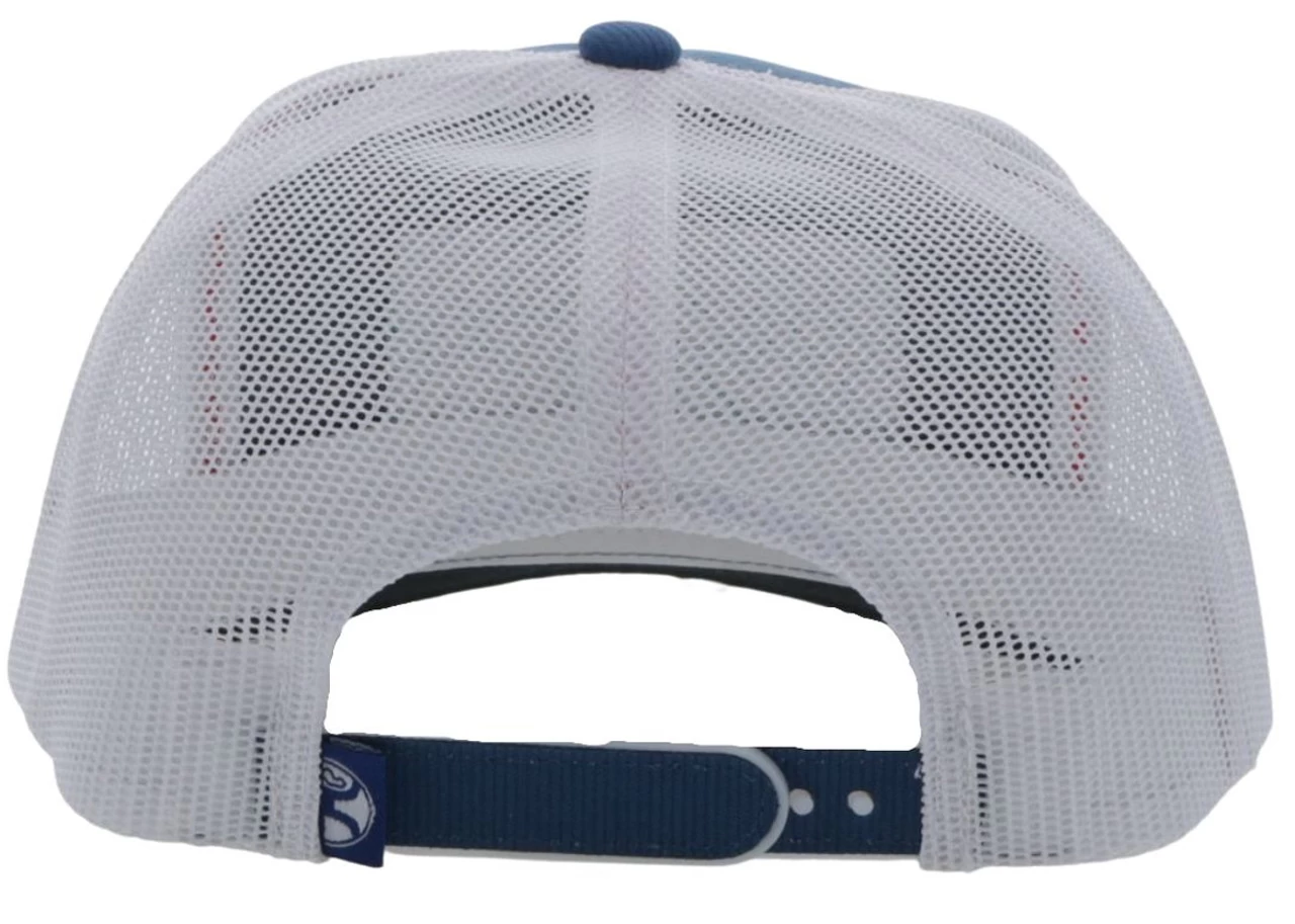 Hooey Caps are for anyone who lives the true western life. This Loop adjustable cap provides a comfortable fit and includes an adjustable mesh back. The hybrid bill of the ball cap stays flat or bends to your preferred shape. Blue and white cap with white, navy and red rectangle patch Embroidered navy H on side of cap Polyester / Cotton / Spandex Breathable Mesh Back Adjustable navy Snap Band One size fits most Hybrid Bill Imported